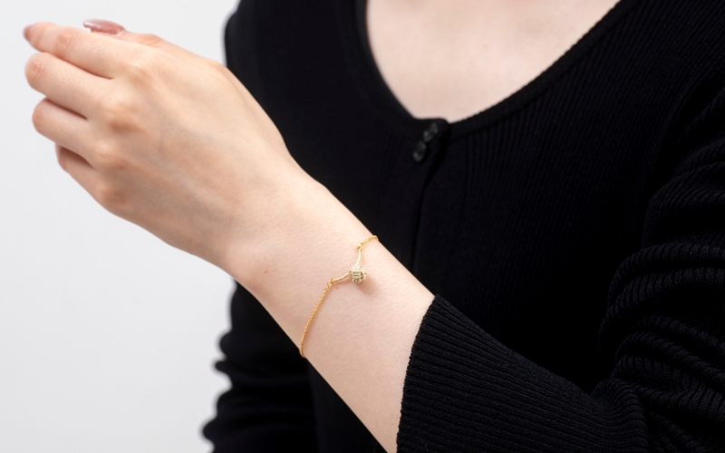 小さめの水引珠がアクセントになり、手首をおしゃれに彩ってくれます。